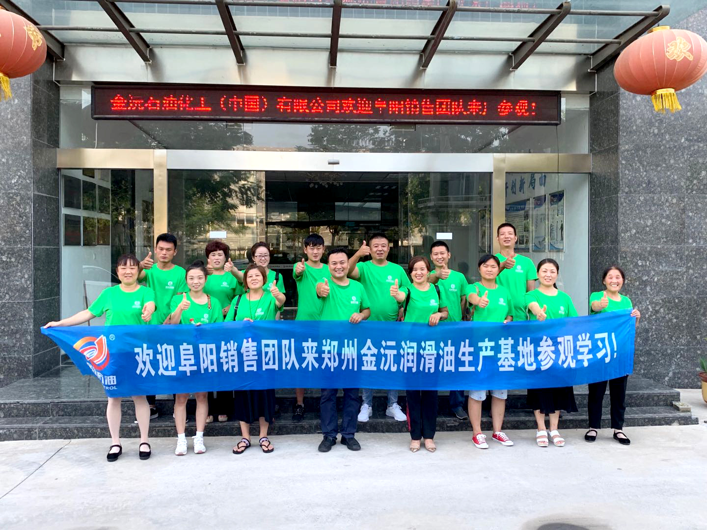 2019年07月27日,金沅润滑油总经理朱红雨(朱总)及阜阳分公司魏香梅(魏总)携阜阳优秀终端零售商代表团,来郑州生产基地参观学习;