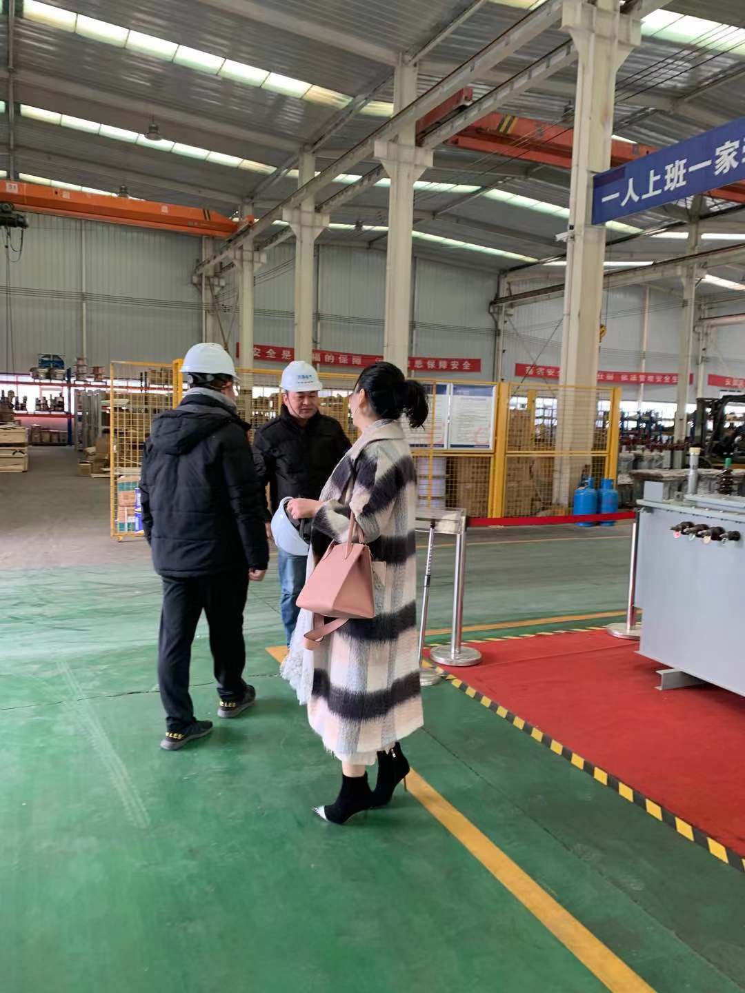 2019年12月17日上午,金沅石油化工(中国)有限公司总经理朱红雨协公司技术部及销售部到天晟电气股份有限公司参观考察,在天晟电气公司总经理张卿的陪同下,参观了变压器、箱式变电站、高低压开关柜等设备的生产车间。